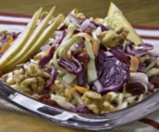Ensalada de repollo morado con peras, nuez Pecán y Arándanos deshidratados